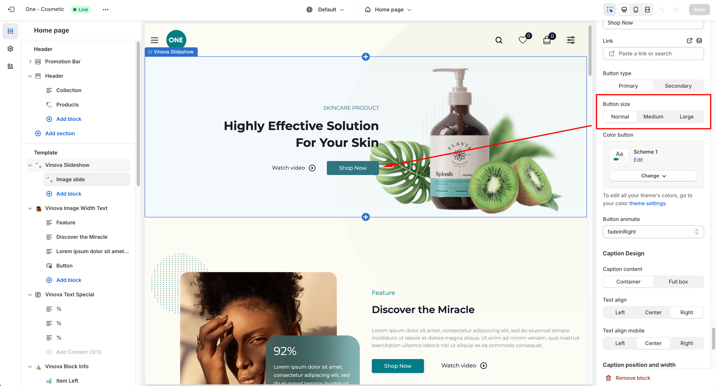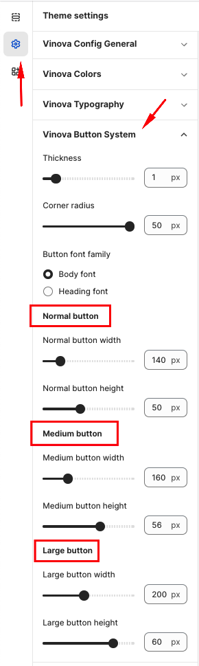 From "Theme Settings," click the tab "Vinova Button System"