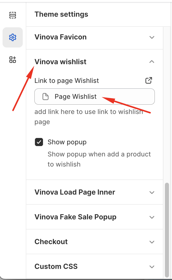 Step 2: From "Theme settings", Click the Tab "Vinova Wishlist" and link to the wishlist page you just created. Click the "Save" button to finish.
