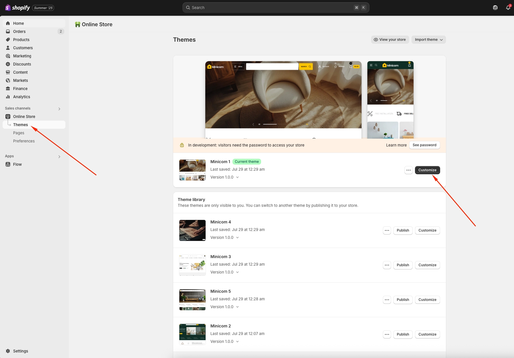 From your Shopify admin, go to "Online Store" -> "Themes" -> Click the "Customize" button.