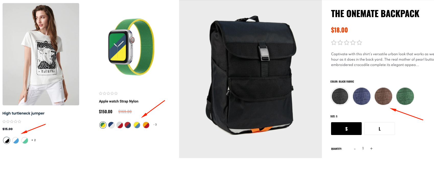Some products come in multiple colors; you need to create a separate variation for these products. Examples of some products in the demo: