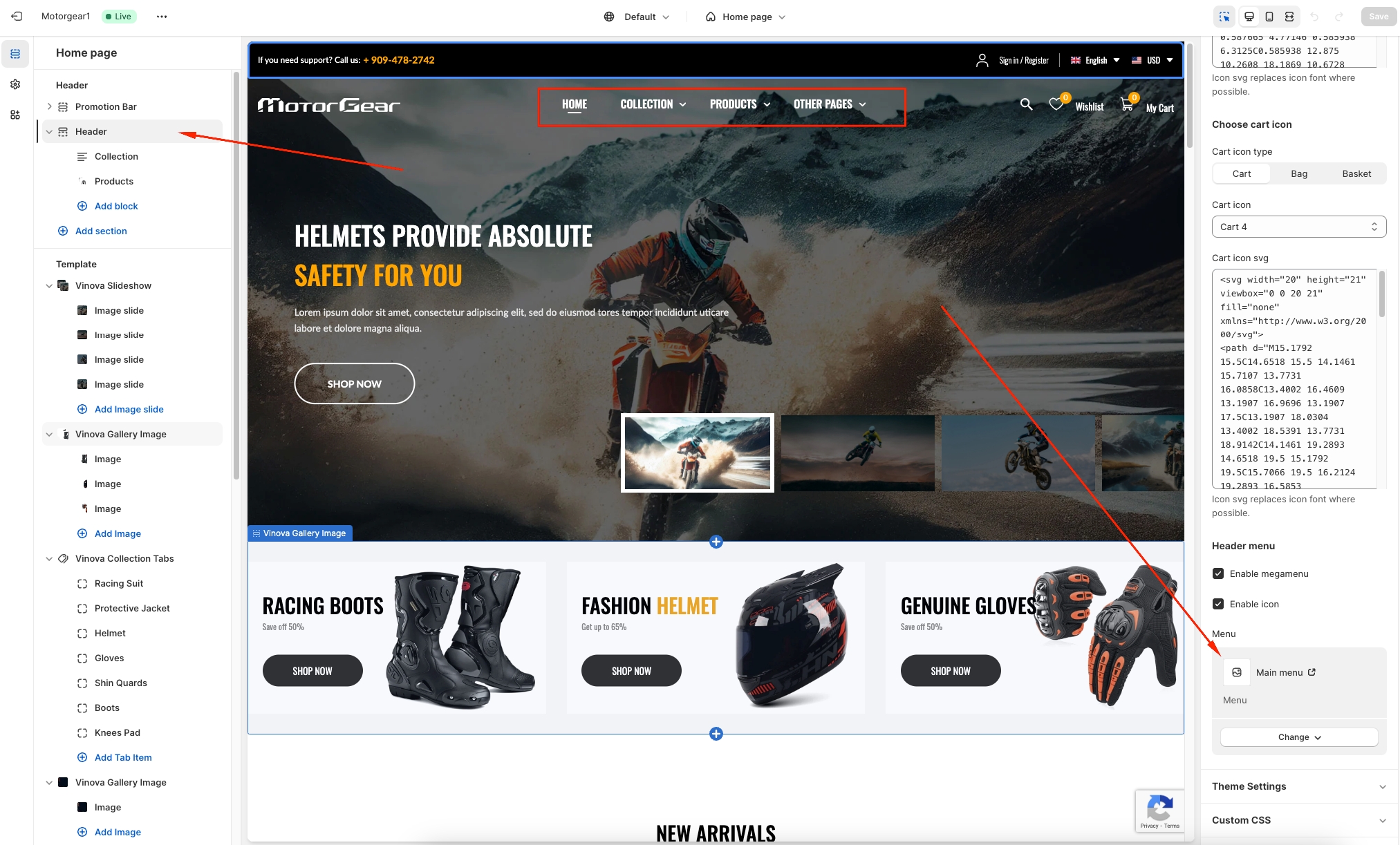 The Main menu is the menu on the Header. In this tutorial, we will show you how to set up the header menu and configure it like our demo. You can use this guide to set up your menu.