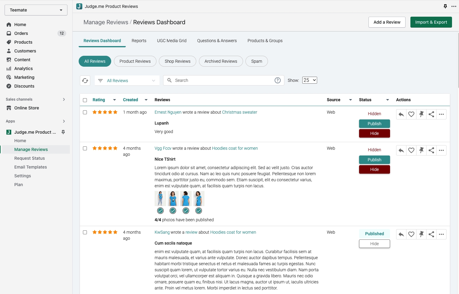 OurTheme is compatible with Judge.me Product Reviews app. To use the product review feature, please install this app Here