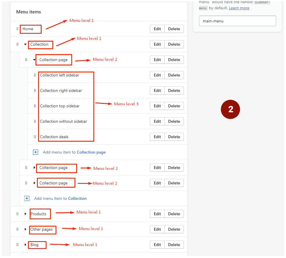 2. In the demo, we create up to 3 levels for a menu (Please see photo #2)