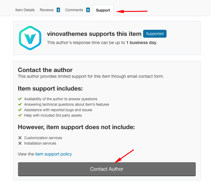 Item support includes: